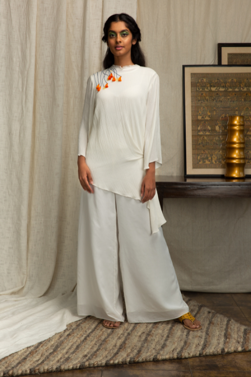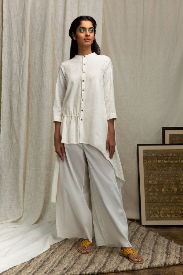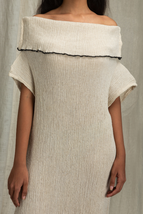 the meditative thought of the weaver, to bring to life the value of natural fibre. a hand woven textile, a hand crafted ensemble, expressing the intrinsic qualities of silk, blending it skillfully to create finer, more unique, new age textiles, weaving together the fabric of two civilizations - the warp of the ancient and the weft of the modern.